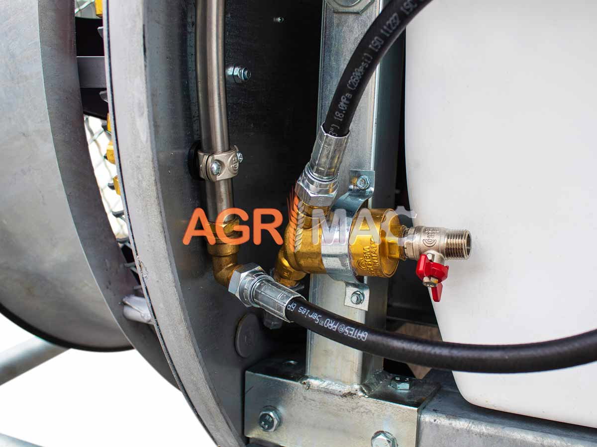 Echipat cu pompă COMET APS 121 ITALY, atomizorul oferă un debit ridicat și o presiune constantă. Controlul de lux ROTOMEC permite o reglare fină a pulverizării, iar reductorul italian cu multiplicator de turație al turbinei îmbunătățește performanța. Sistemul include duze ceramice cu dublă rotație și sistem anti-picurare, iar agitatorul cu premixer menține soluția omogenă pentru aplicare uniformă.
