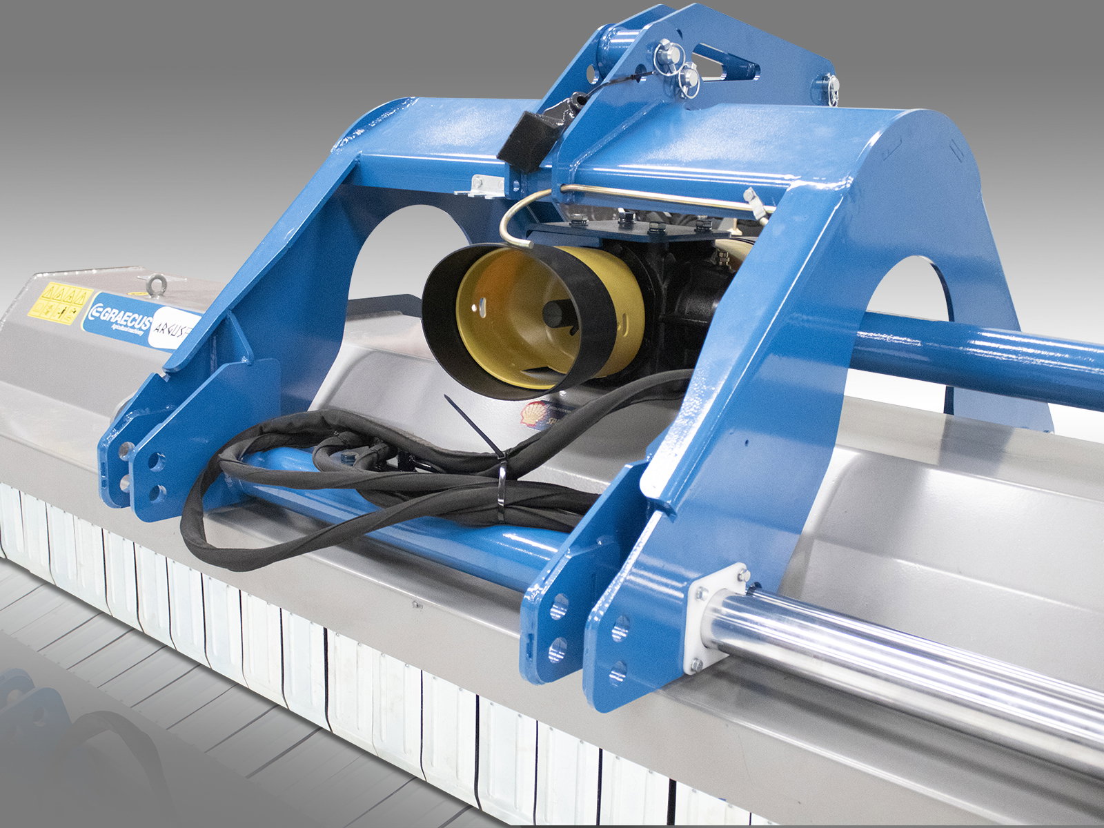 Tocatorul de vegetație reversibil Graecus ARGUS F280, cu o lățime de lucru de 280 cm și conectare la cardanul tractorului, este soluția ideală pentru gestionarea eficientă a vegetației dense și a ramurilor. Echipat cu un sistem de deplasare laterală hidraulică, acest tocator oferă performanță superioară și durabilitate în utilizare, fiind perfect pentru fermieri și profesioniști din domeniul agricol.