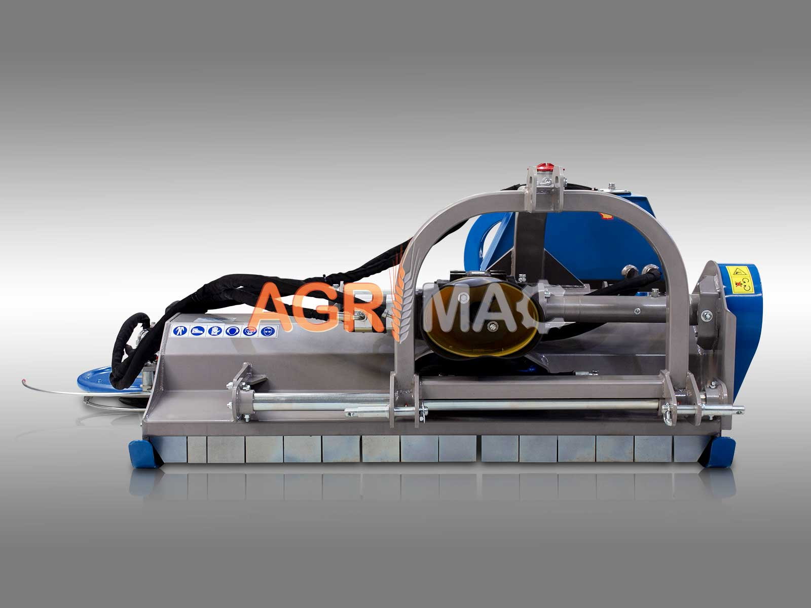 - Disc de Cosire Lateral Autonom: Echipat cu un disc de cosire lateral de 60 cm, alimentat de un motor hidraulic, care nu necesită conexiune hidraulică la tractor.