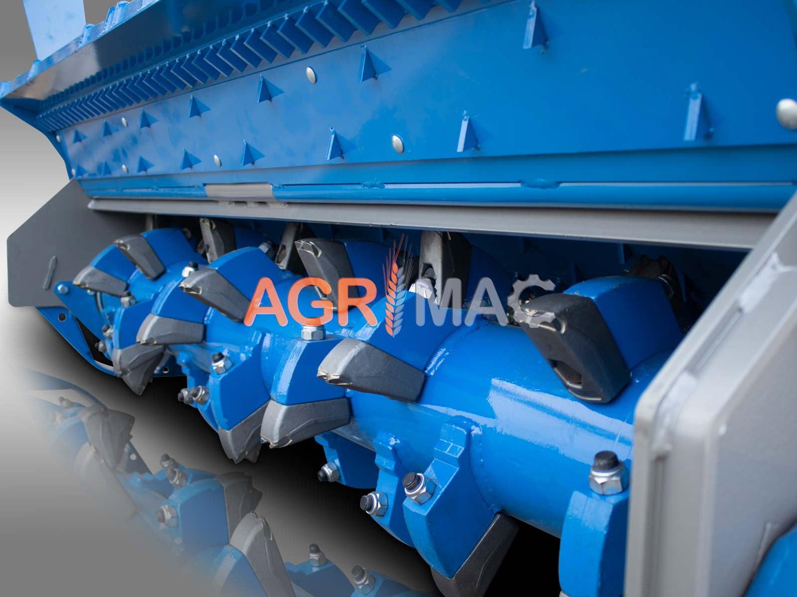 • Rotor elicoidal inovator: Dimensiuni de 219x20 mm, cu ciocane speciale prinse cu suruburi speciale pentru măcinare la adâncimi de până la 7 cm sub pământ.