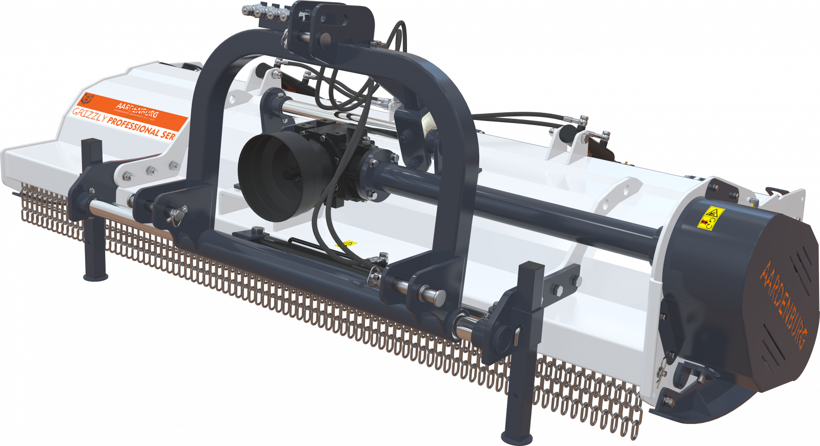 Aardenburg Alpha M 2600 Grizzly este un tocător de vegetație ierboasă și lemnoasă, special proiectat pentru sarcini grele, ideal pentru profesioniștii care doresc performanță maximă în gestionarea resturilor vegetale și a crengilor. Echipat cu ciocane grele din oțel forjat pe un rotor supradimensionat, Grizzly este perfect pentru tocarea vegetației dense, a crengilor și a resturilor lemnoase. Construcția sa robustă și capota de mulcire acționată hidraulic permit o productivitate ridicată, fiind ideal pentru amenajatori de spații verzi, contractori, municipalități cu suprafețe mari de întreținut si agricultori.