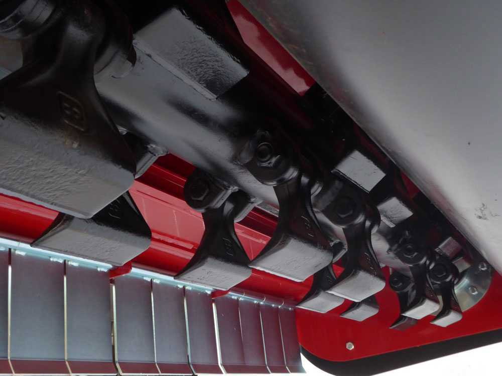 - Echipat cu sarcini grele: Echipat cu 20 de ciocane de 1,2 kg fiecare, ideal pentru tocarea ierbii, a tufișurilor și a ramurilor sau 40 de lame Y pentru tocarea vegetatiei predominant ierboase.