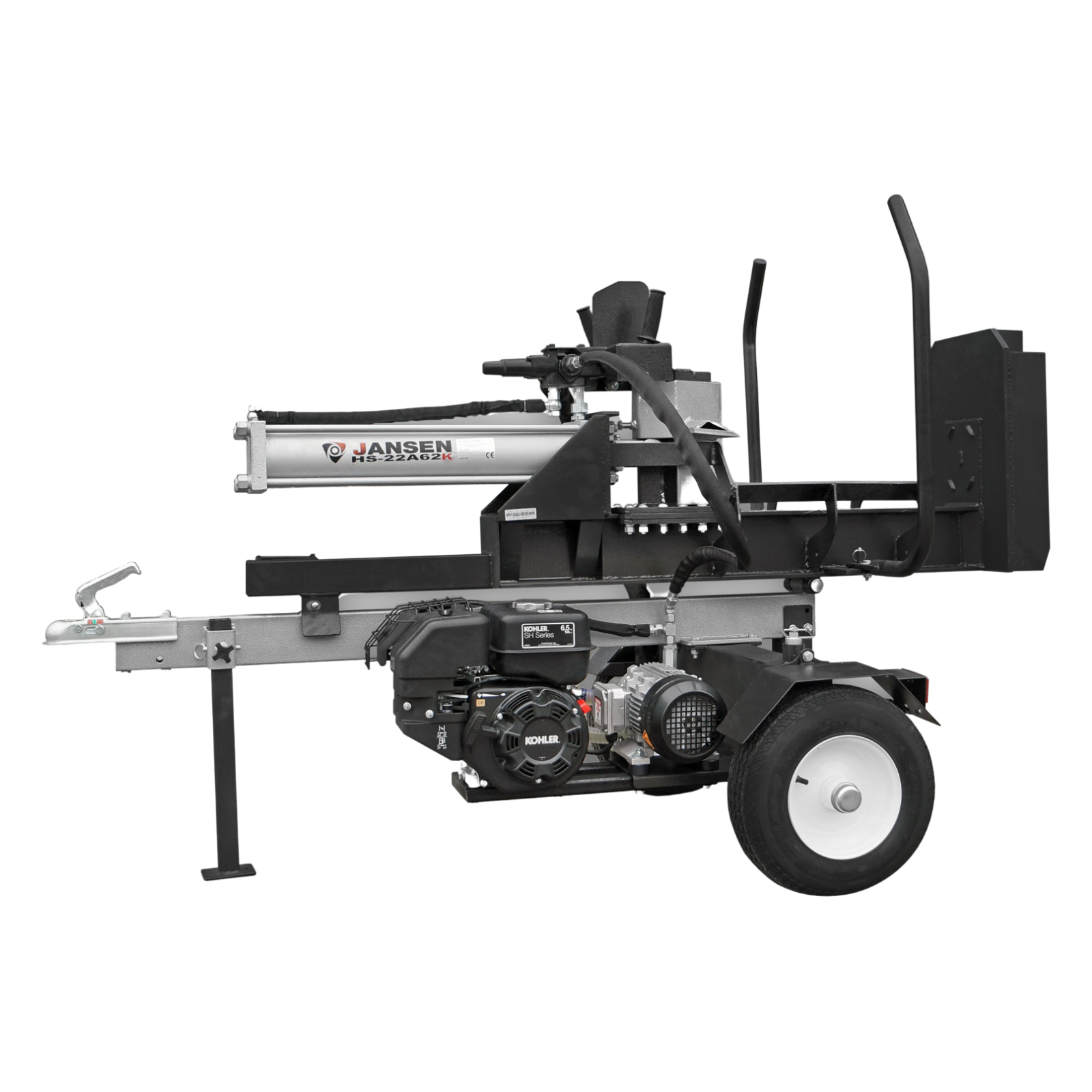 Vă prezentăm Despicatorul de Lemne Jansen HS-22A62K, un echipament de clasă premium cu o forță reală de despicare de 22 de tone. Echipat cu un motor pe benzină Kohler de înaltă calitate de 6.5 CP și un motor electric puternic de 400V și 2.2 kW, acest model vă oferă libertatea de a alege între propulsie electrică sau pe benzină.