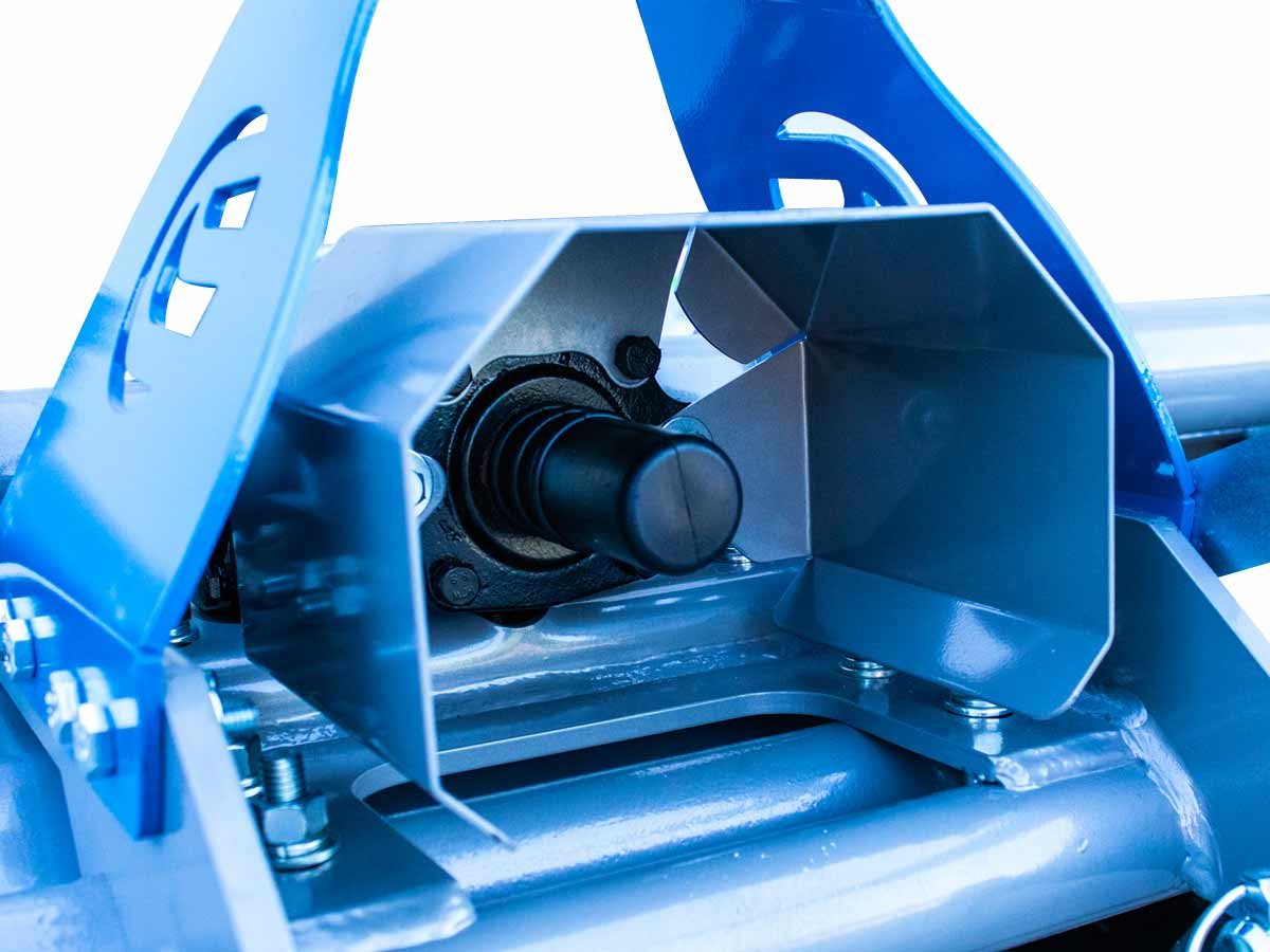 FREZA E135 este versiunea modernizată a modelului EF135, proiectată pentru tractoare cu putere redusă între 18 și 35 CP. Utilajul este ideal pentru afânarea solului în grădini, livezi sau terenuri agricole de dimensiuni mici și medii. Este echipat cu cuțite de 550g intarite special și un sistem de transmisie laterală prin lanț în baie de ulei cu întinzător automat. Dispunerea ușoară a prinderii în 3 puncte permite reglarea laterală mecanică pentru o adaptare rapidă pe teren. Capacul spate este reglabil pentru nivelare optimă a solului după frezare. Adâncimea de lucru se reglează cu ajutorul patinelor laterale.