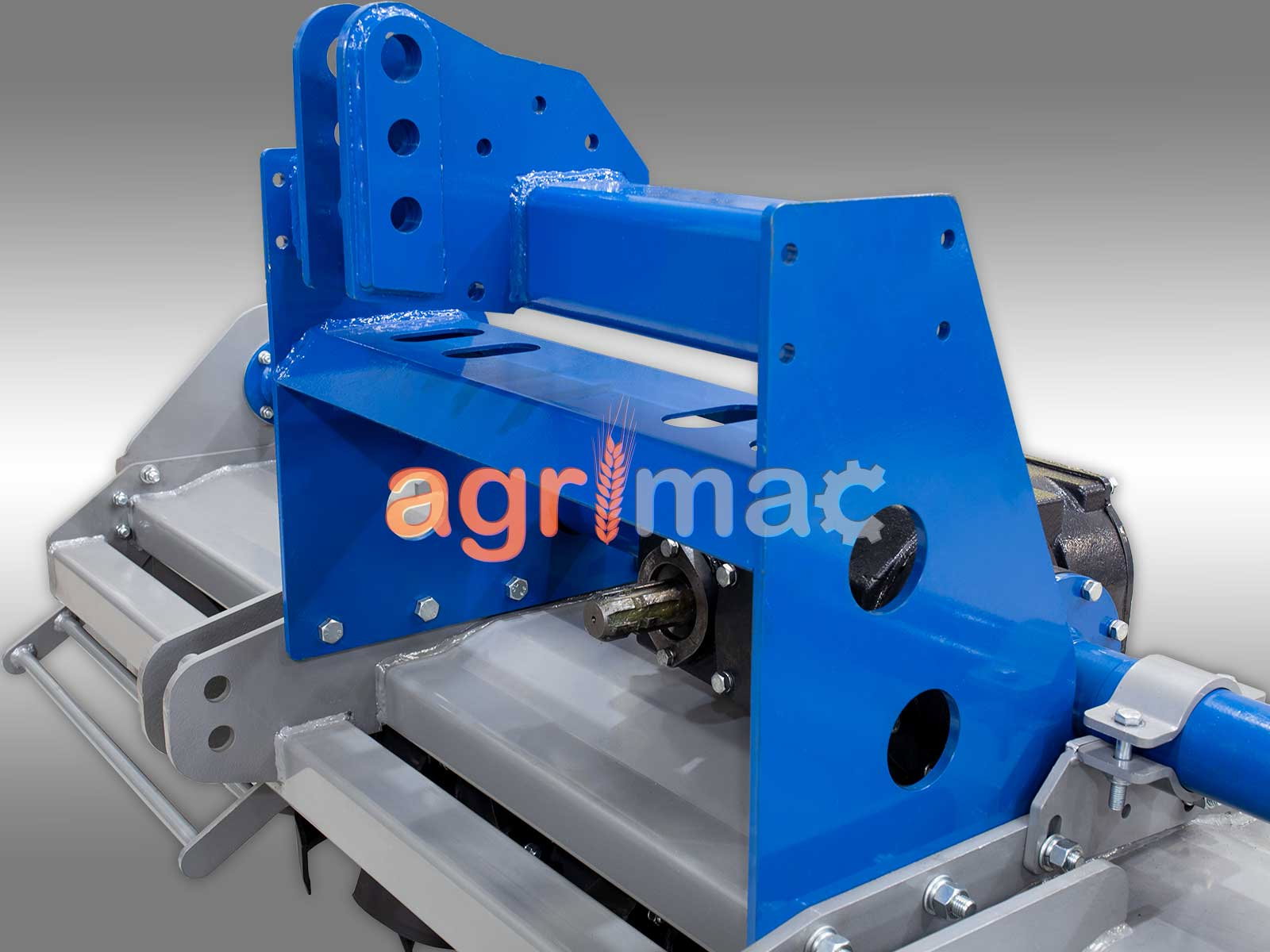 Opțiunile multiple de viteză a arborelui cuțitelor permit ajustarea eficienței de lucru, iar capota reglabilă ajută la nivelarea optimă a terenului. Cuțitele special tratate și lagărele de lungă durată asigură o funcționare îndelungată, iar sistemul de prindere în trei puncte, categoria II, garantează compatibilitate cu tractoarele puternice.