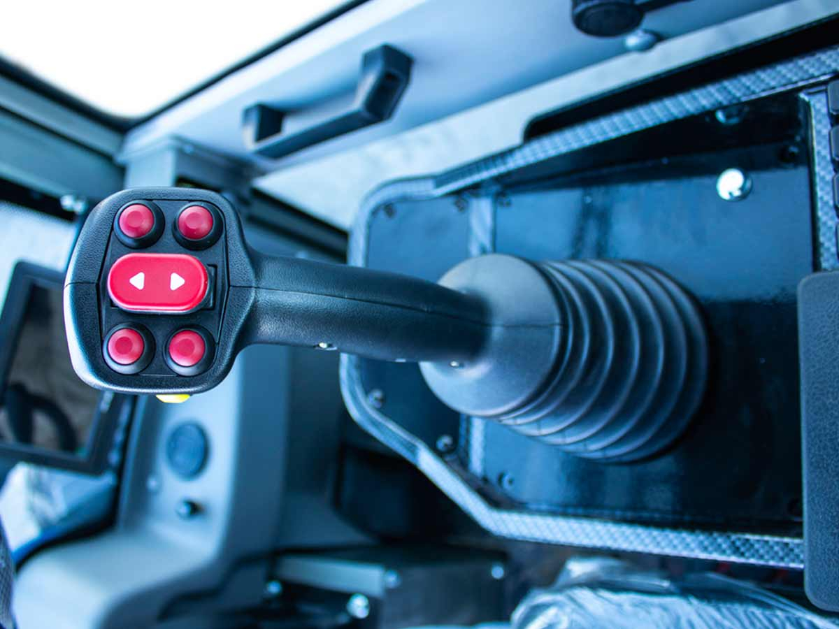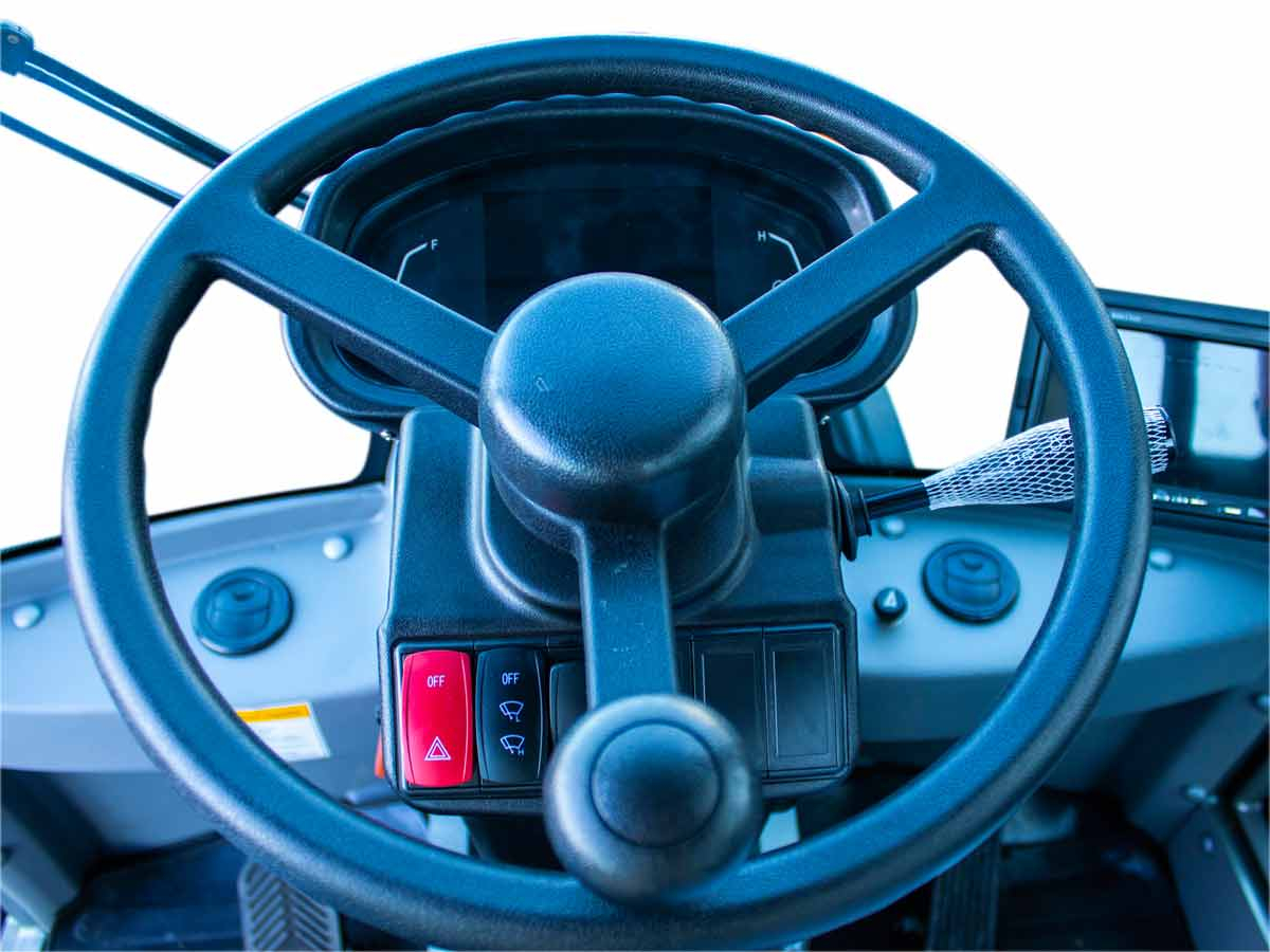 Cabina închisă, dotată cu aer condiționat și cameră de marșarier, oferă confort și siguranță în exploatare.