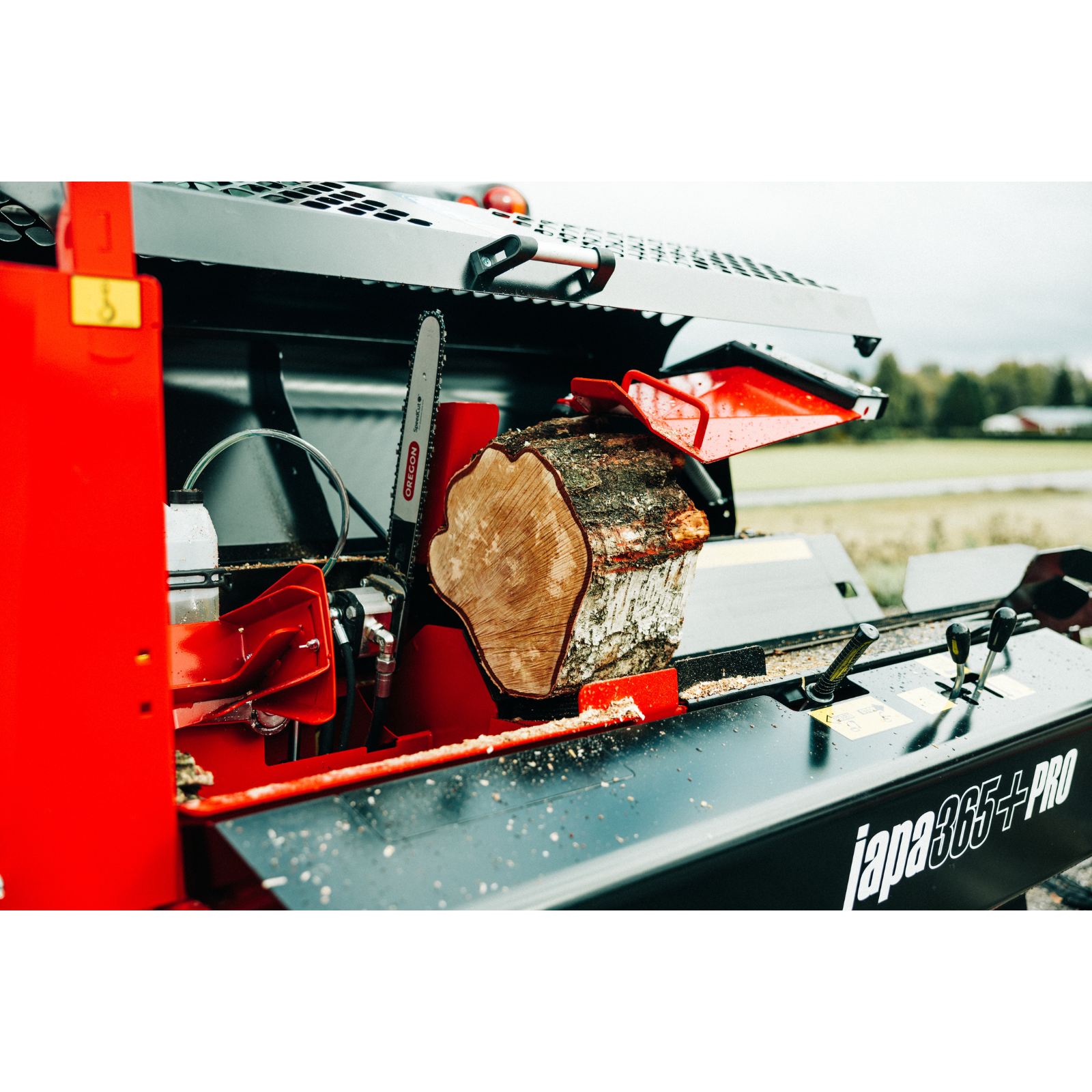Japa 365+ PRO este o linie de tăiere și despicare lemne de înaltă performanță, proiectată și fabricată în Finlanda pentru profesioniștii din industria prelucrării lemnului. Versiunea TRE combină motorul electric de 7.5 kW cu posibilitatea de conectare la cardanul tractorului, oferind o flexibilitate superioară în operare. Această mașină permite tăierea și despicarea simultană, maximizând productivitatea și eficiența.