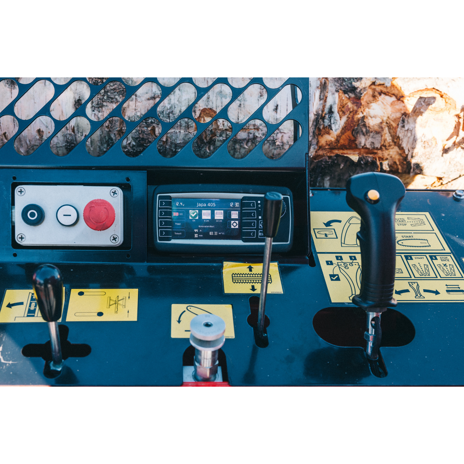 Japa® 405 TRE – Linie profesională de tăiere și despicare lemne cu conectare la cardanul tractorului și motor electric de 10 kW, sistem avansat de automatizare și putere de despicare de 12,5 tone. Echipată cu tehnologii Perfect Split™ și Perfect Clean™, această mașină este destinată utilizatorilor exigenți din sectorul forestier și producția de lemn de foc de înaltă calitate.