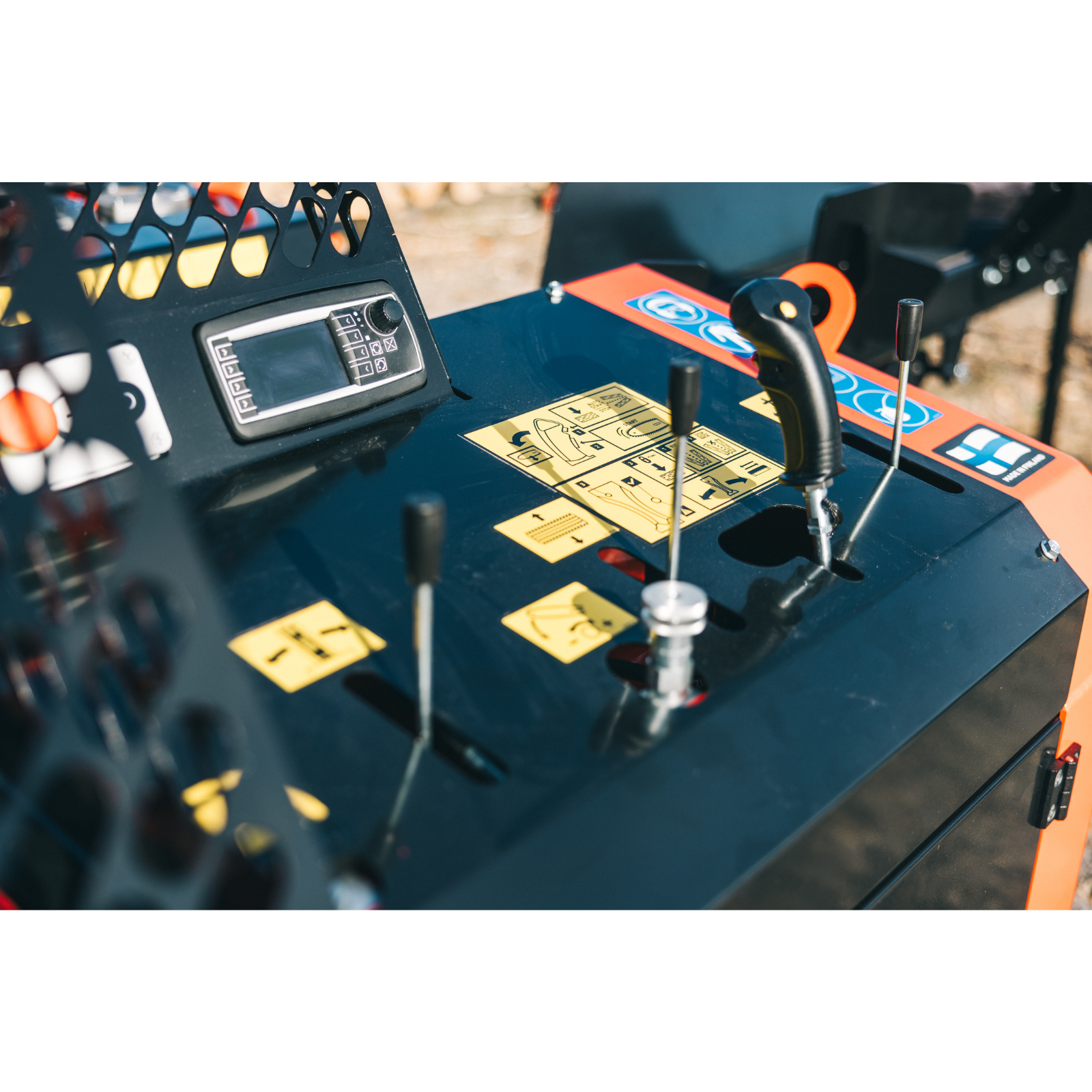 • Automatizare logică a funcțiilor – alimentare, tăiere, despicare și placa de cădere operate dintr-un singur joystick ergonomic.