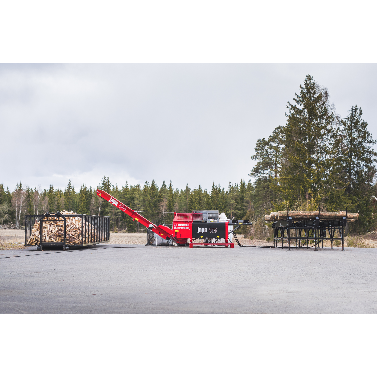 Japa® 405 E – Linie profesională de tăiere și despicare lemne cu motor electric de 10 kW, sistem avansat de automatizare și putere de despicare de 12,5 tone. Echipată cu tehnologii Perfect Split™ și Perfect Clean™, această mașină este destinată utilizatorilor exigenți din sectorul forestier și producția de lemn de foc de înaltă calitate.