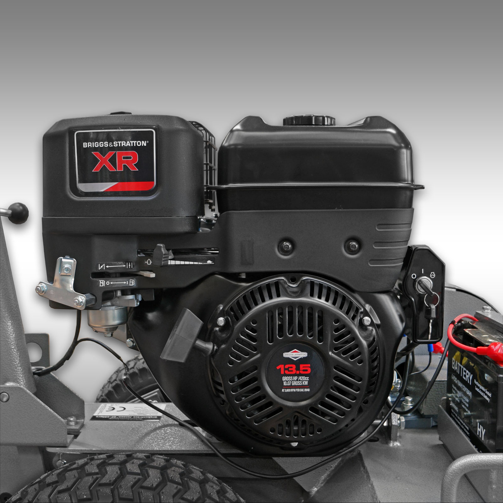 Puternicul motor pe benzină de 13,5 CP de la Briggs&Stratton oferă puterea necesară pentru functionarea optima.