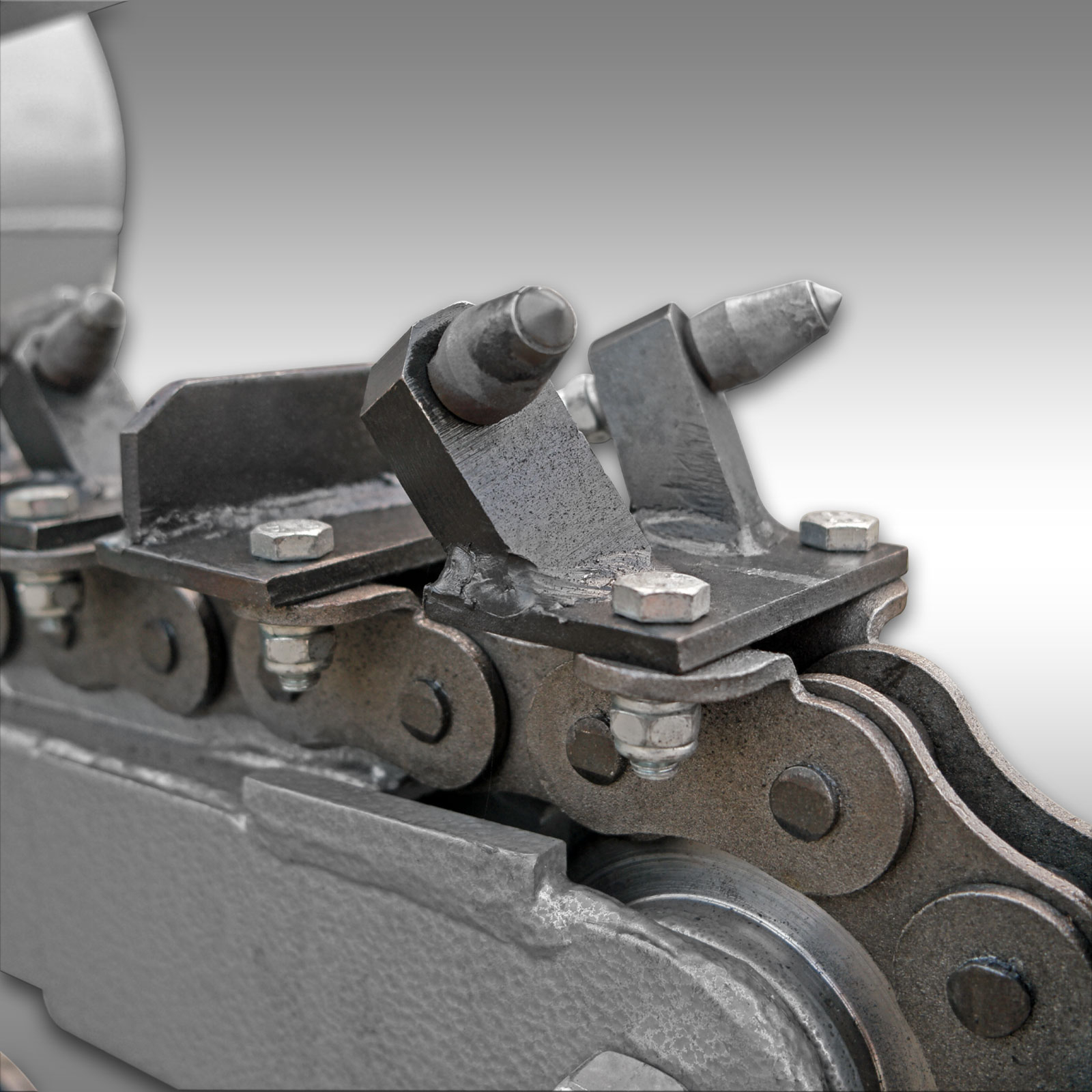 Cei 27 de dinti de sapat aliati cu carbură sunt înșurubati pe lanțul robust de săpat și pot fi înlocuiti individual.