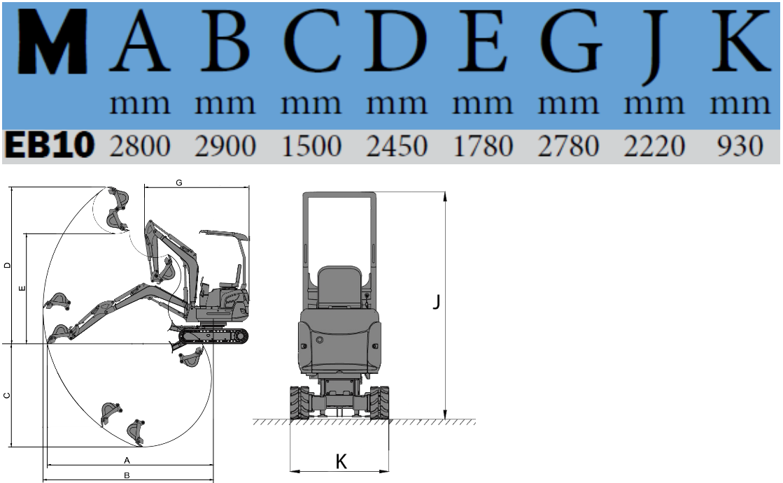 Miniexcavator EB10-XL,1 tona, 10CP, rotire brat, senile reglabile, Motor KOOP KD192 Diesel, sistem hidraulic