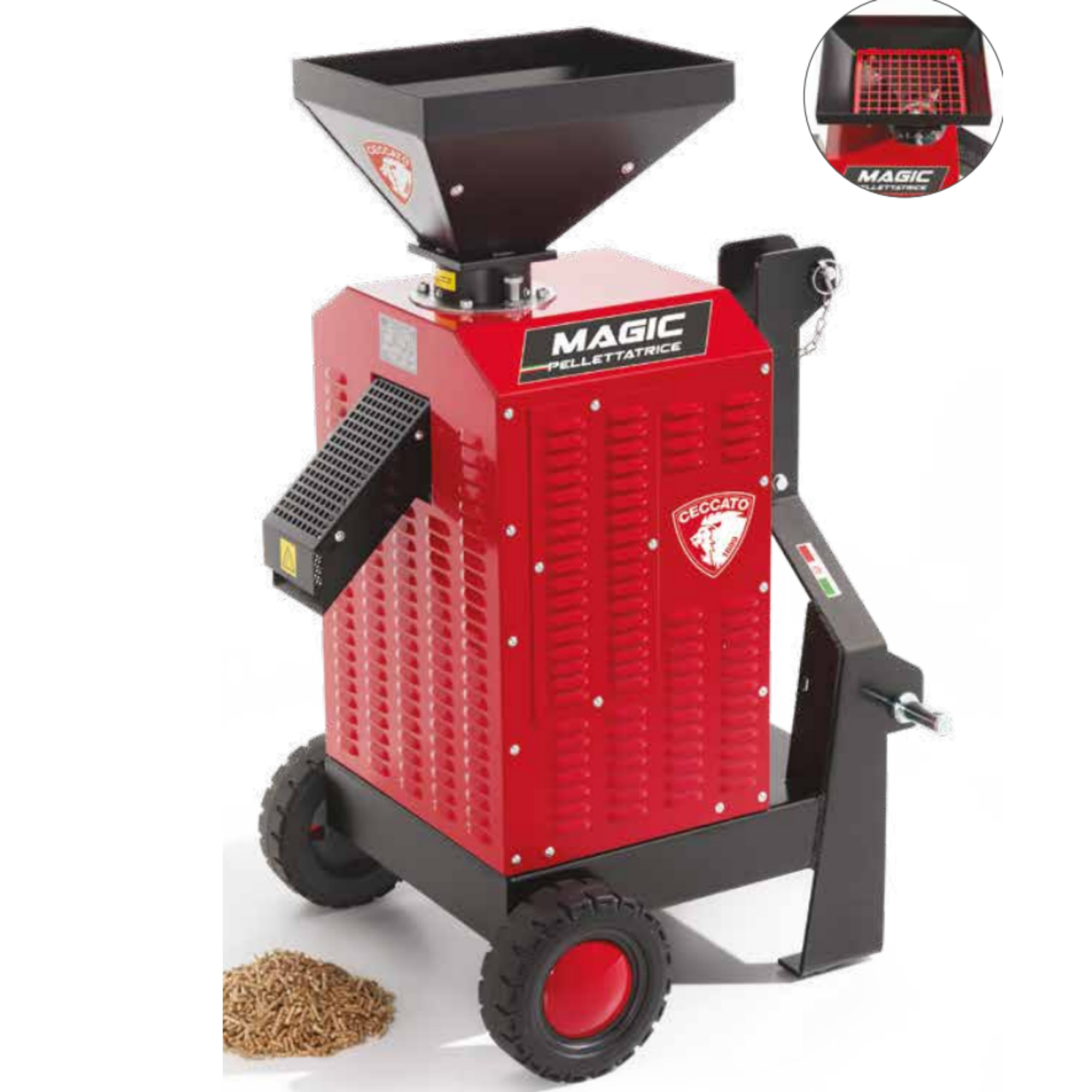 • Masina de fabricat peleti Ceccato Olindo PELLEPTO este cea mai recentă mașină de fabricat peleti  pentru sobe și cazane cu conducere cardanică.