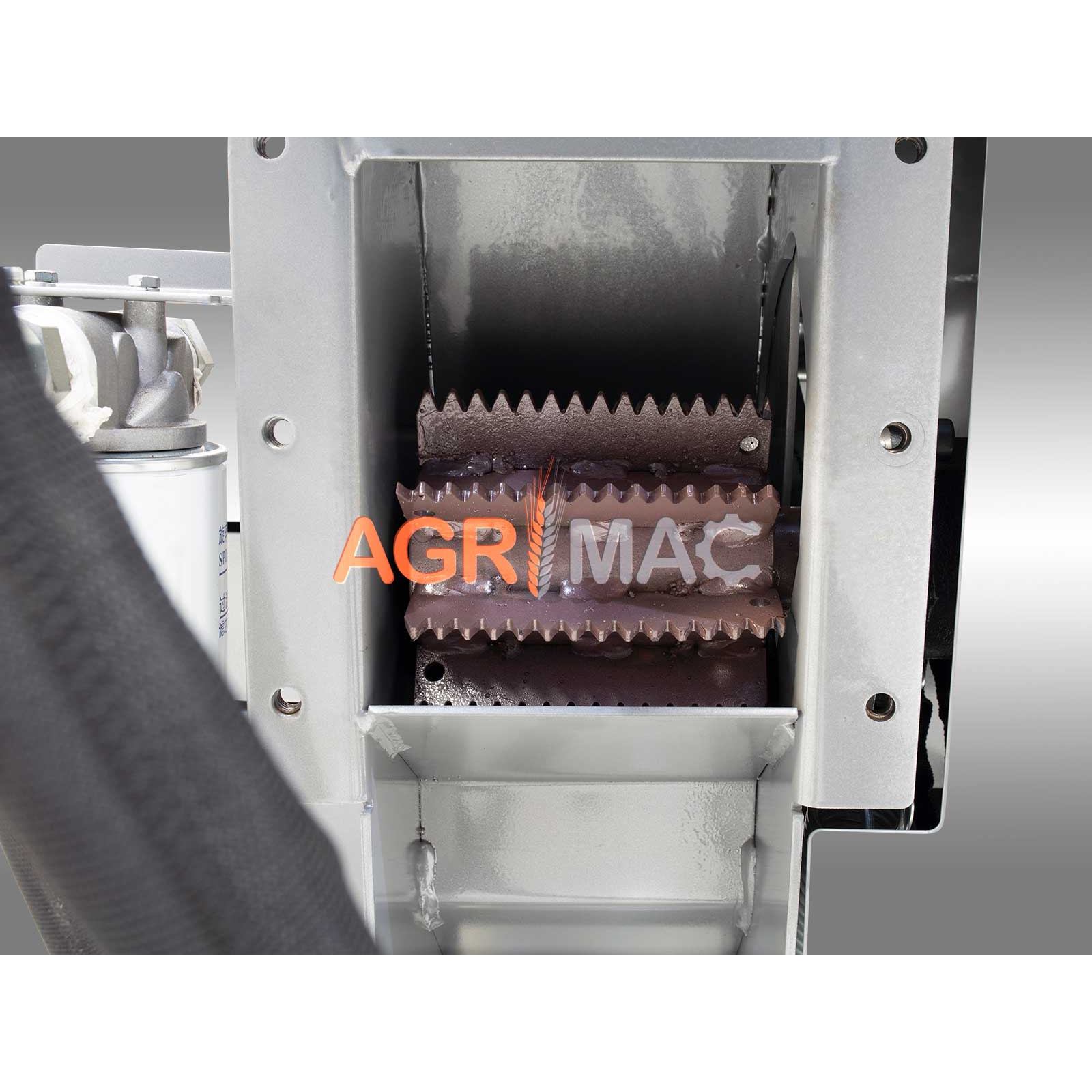 • Tobă echipată cu cuțite și ciocane: Tobă cu 2 cuțite extrem de dure și 2 rânduri de câte patru ciocane, combinând funcționalitatea unei tocătoare de lemn și a unui biotocator.