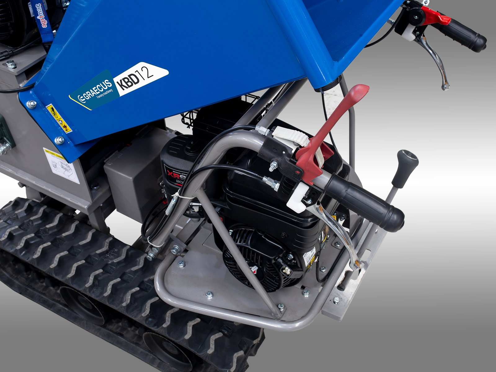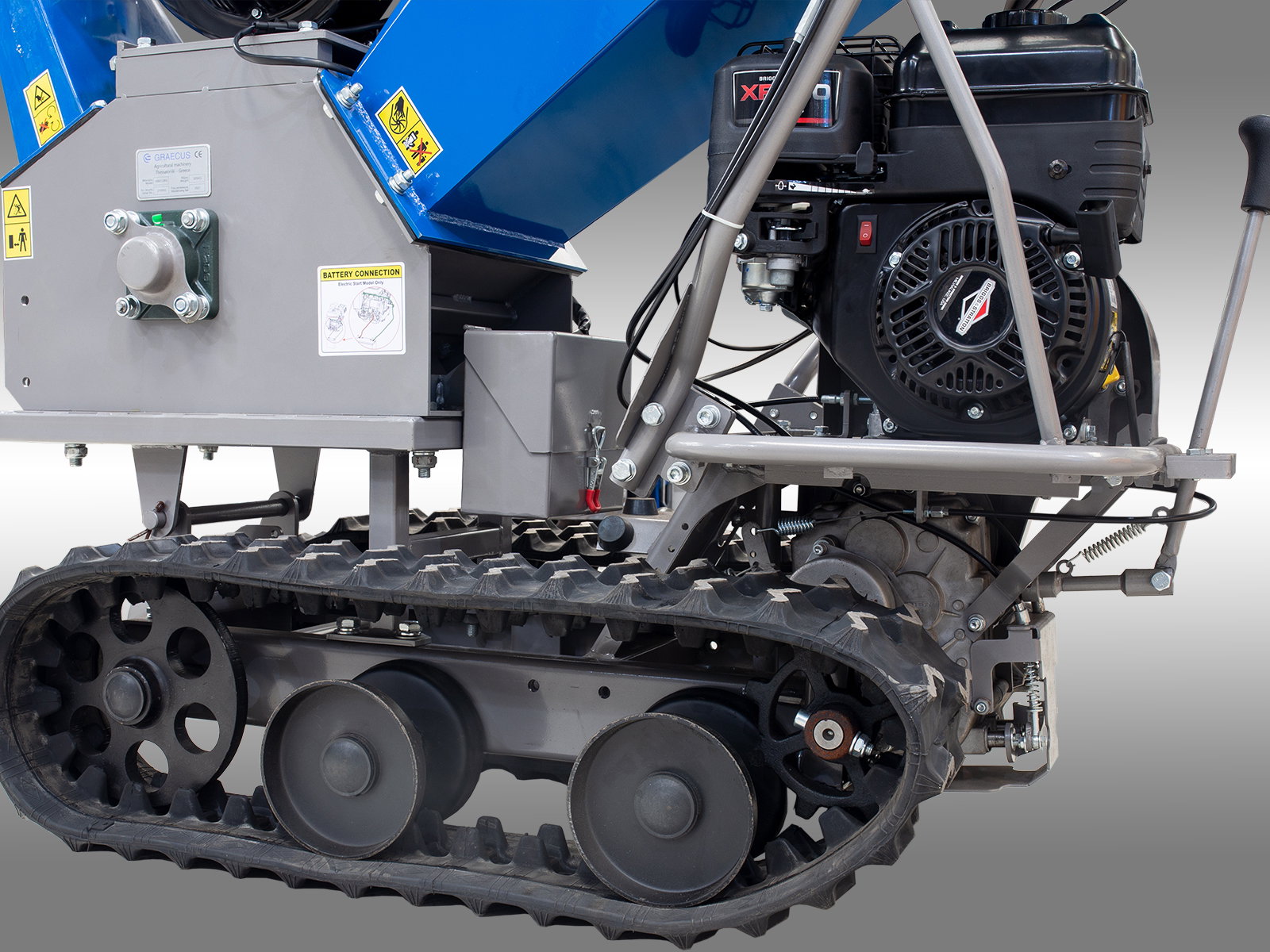 Tocatorul este echipat cu un sistem de angrenare durabil și fiabil, cu 3 viteze înainte și 1 înapoi, și șenile care permit utilizarea pe pante de până la 30% și o capacitate de încărcare și transport de până la 300 kg. Centrul de greutate scăzut și distribuția adecvată a încărcăturii asigură stabilitate maximă pe orice teren.
