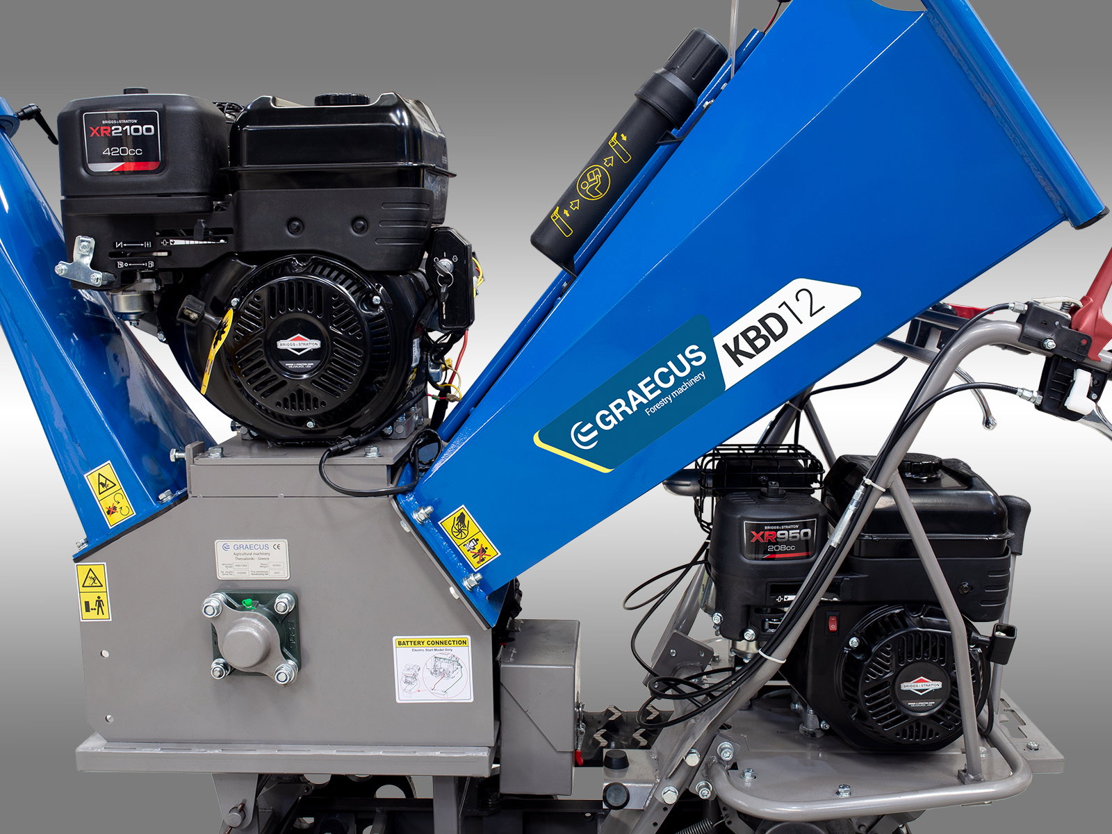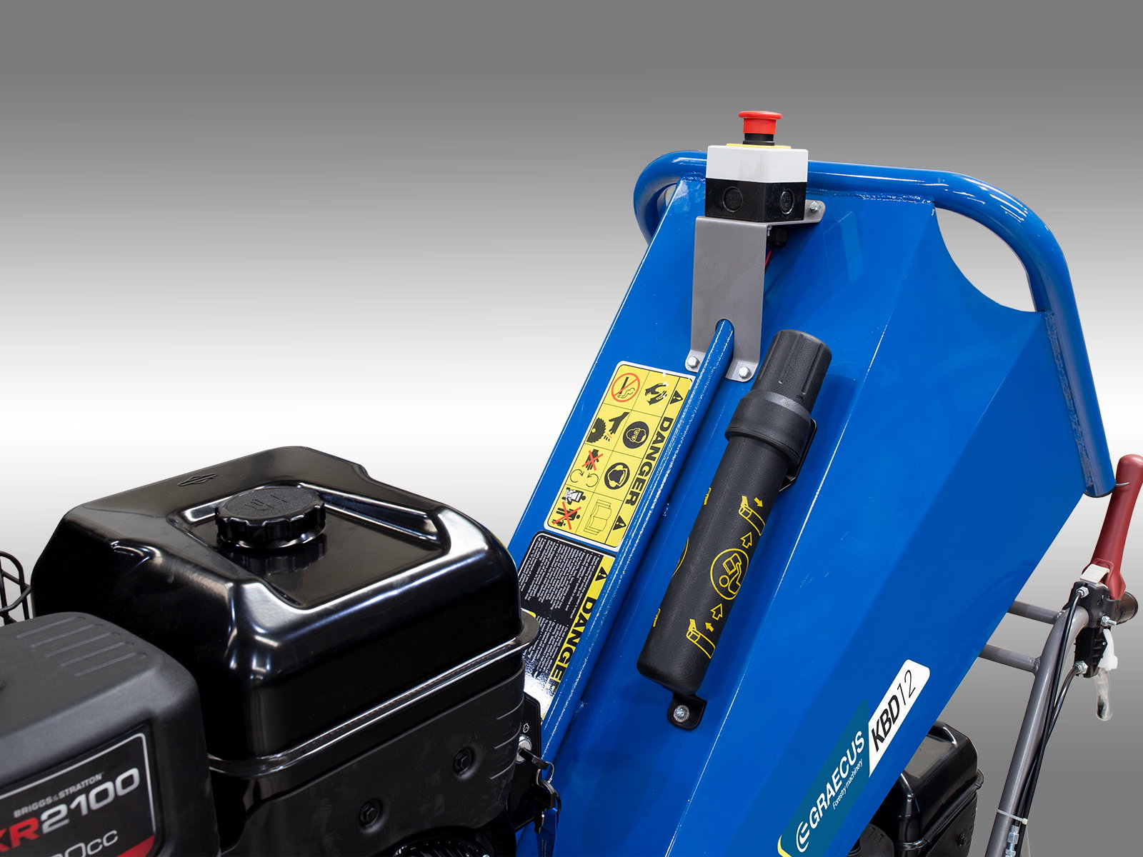 Tocator de Crengi cu Motor pe Benzină Loncin, 4 Timpi, Graecus KBD12 , reprezintă soluția ideală pentru prelucrarea eficientă a resturilor vegetale. Echipat cu motoare pe benzină de înaltă performanță, acest tocator oferă un starter electric pentru tocare și un starter manual pentru dumper, asigurând o pornire rapidă și simplă.