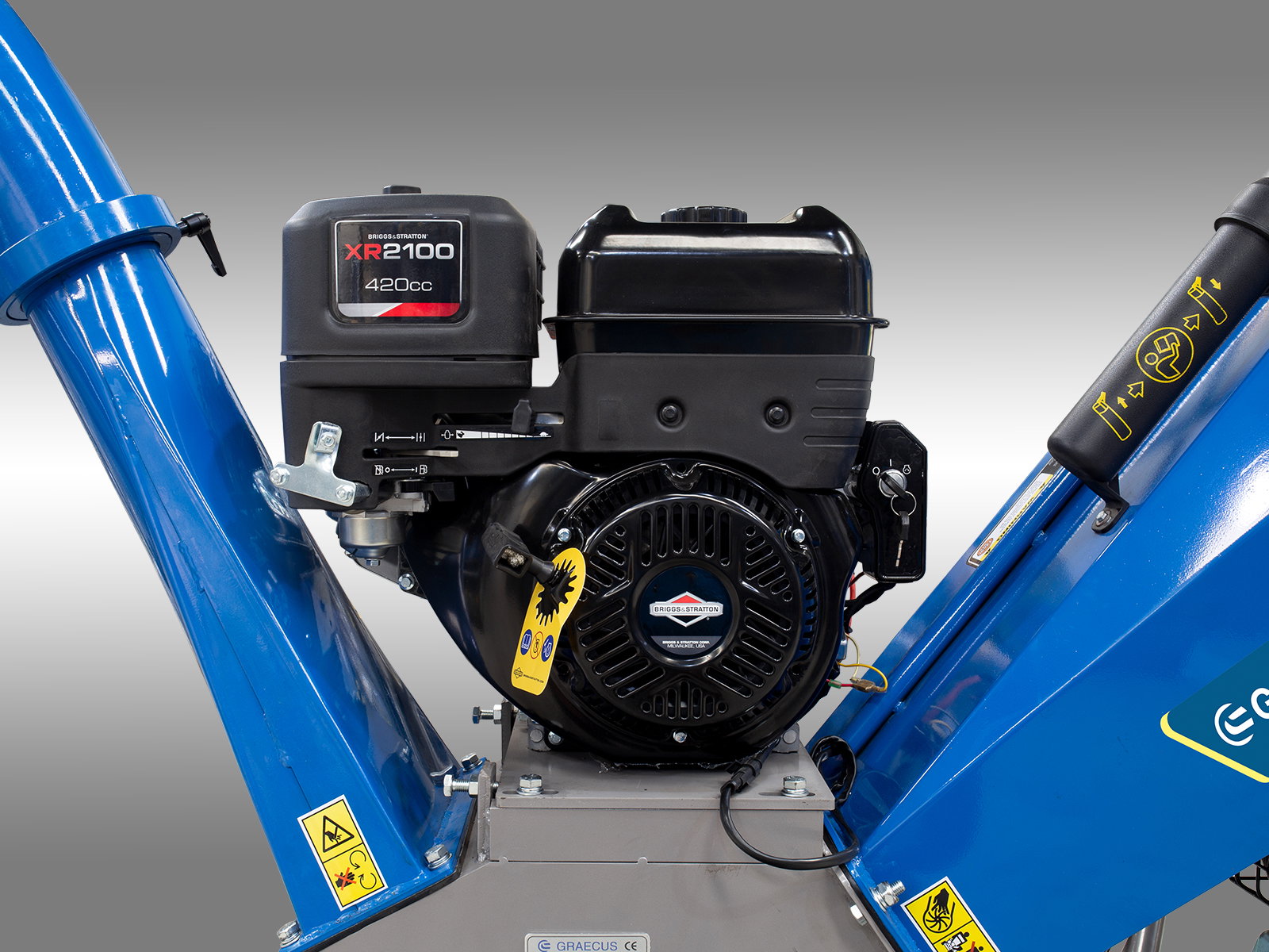 Comenzile ergonomice și ușor de utilizat oferă flexibilitate și control precis, iar frâna de parcare automată asigură siguranța maximă. Tocatorul este construit din metale de înaltă rezistență, cu o întăritura la bază, făcându-l potrivit pentru orice sarcină sau presiune. Funcționarea tocatorului este asigurată de un sistem de siguranță cu un buton de oprire de urgență pentru închiderea imediată și este conform cu standardele CE.