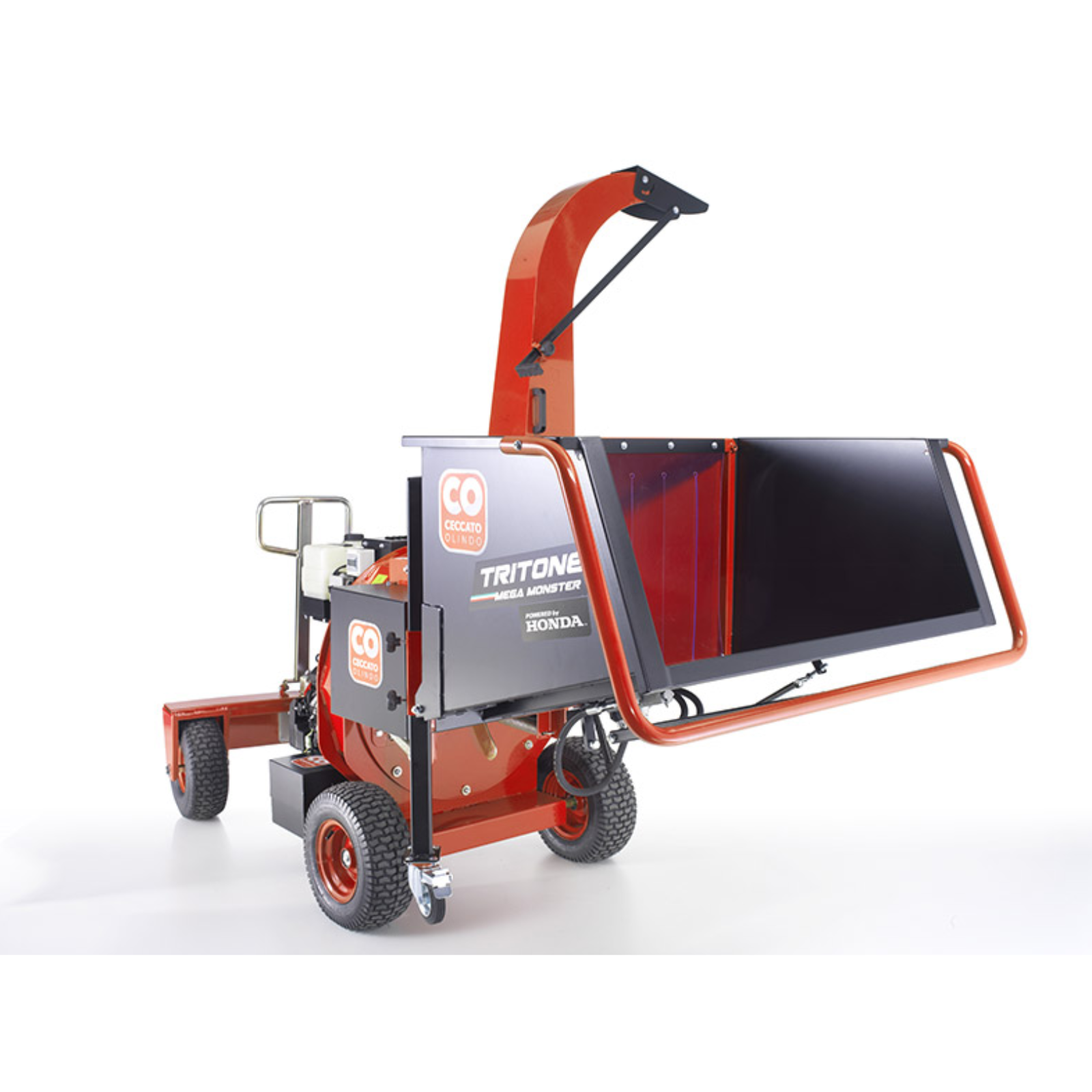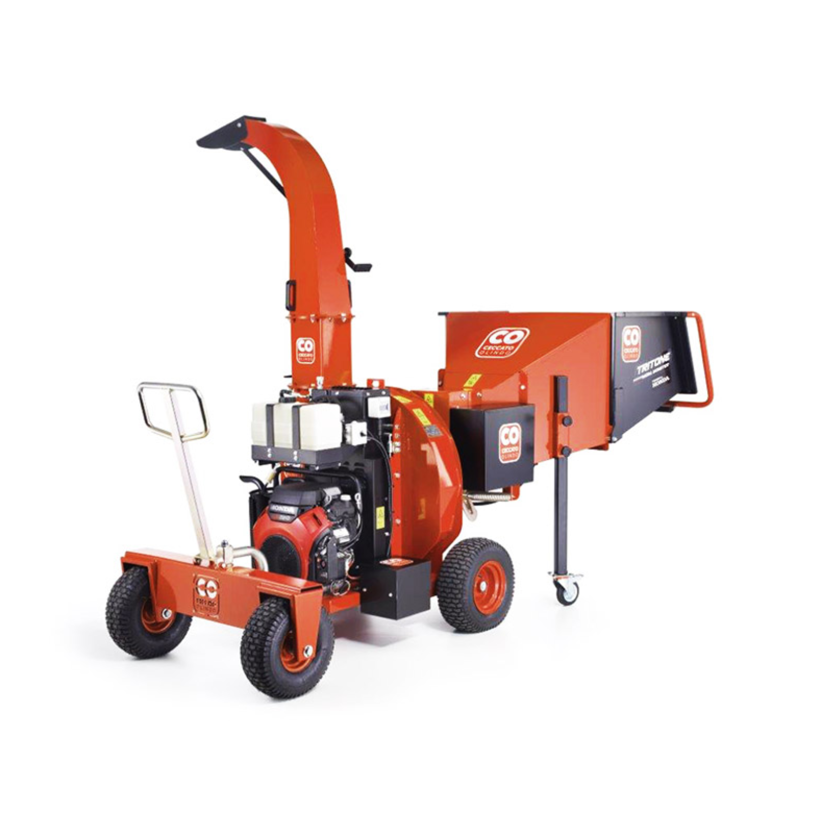 Tritone MEGA MONSTER HONDA GX690 de la Ceccato Olindo, tocător profesional de lemne pe benzină, potrivit pentru crengi de aproximativ 15 cm în diametru.