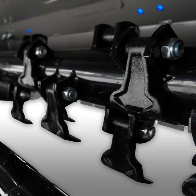 - Lame ciocan grele de 0,8 kg: Cele 24 de lame ciocan, întărite și dispuse pe un ax dublu spiralat, toacă vegetația și resturile de paie la dimensiuni minime. Chiar și iarba înaltă sau resturile vegetale dense nu reprezintă o problemă pentru acest echipament.