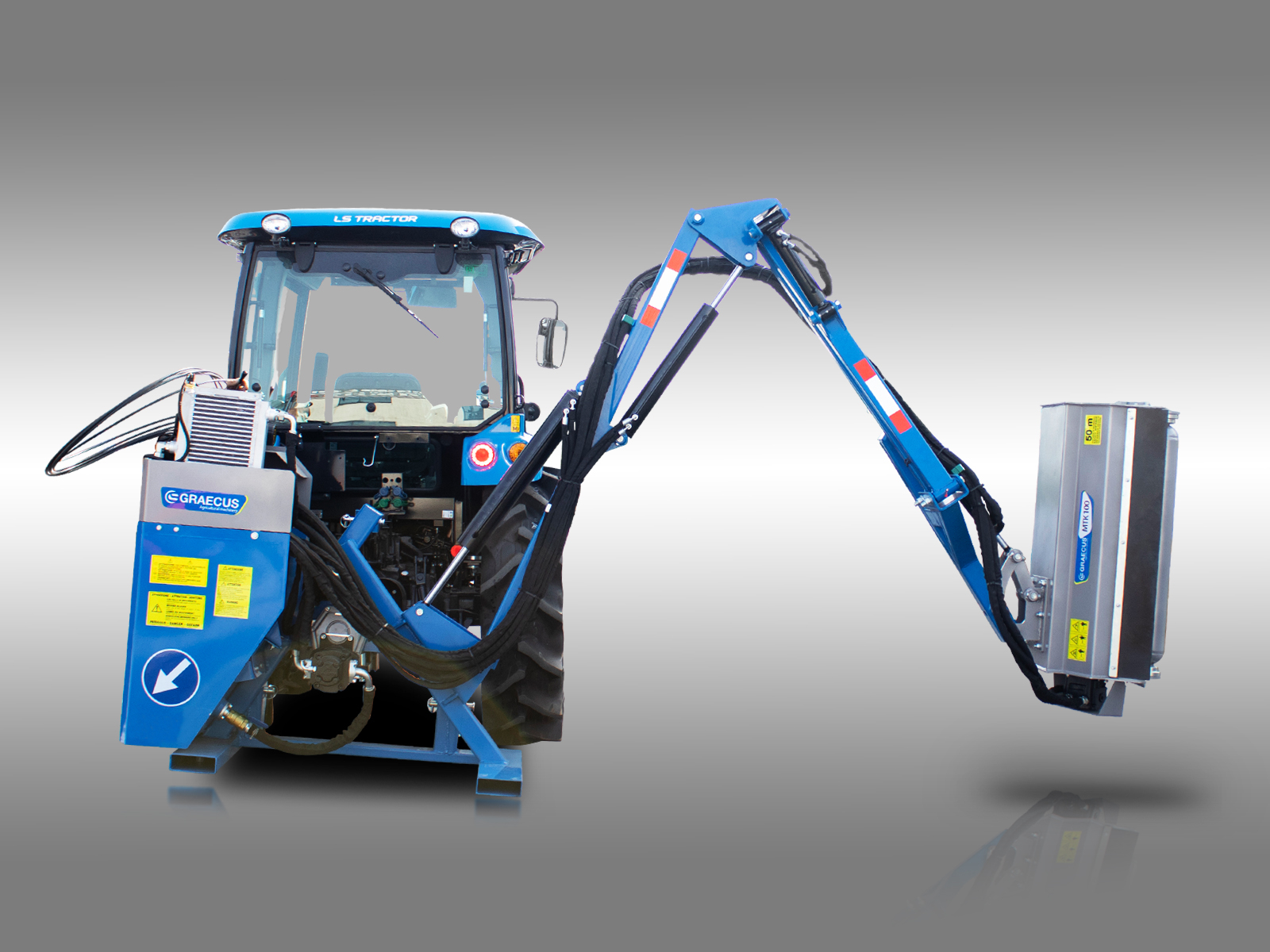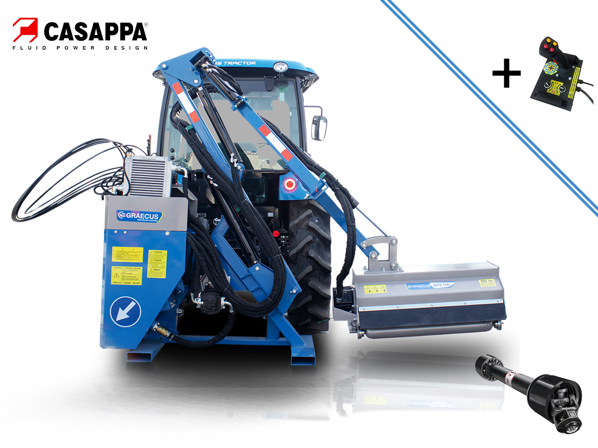 Graecus Tocator de vegetatie cu brat si control prin Joystick, 120 cm, conectare cardan tractor, MTK120 Joystick