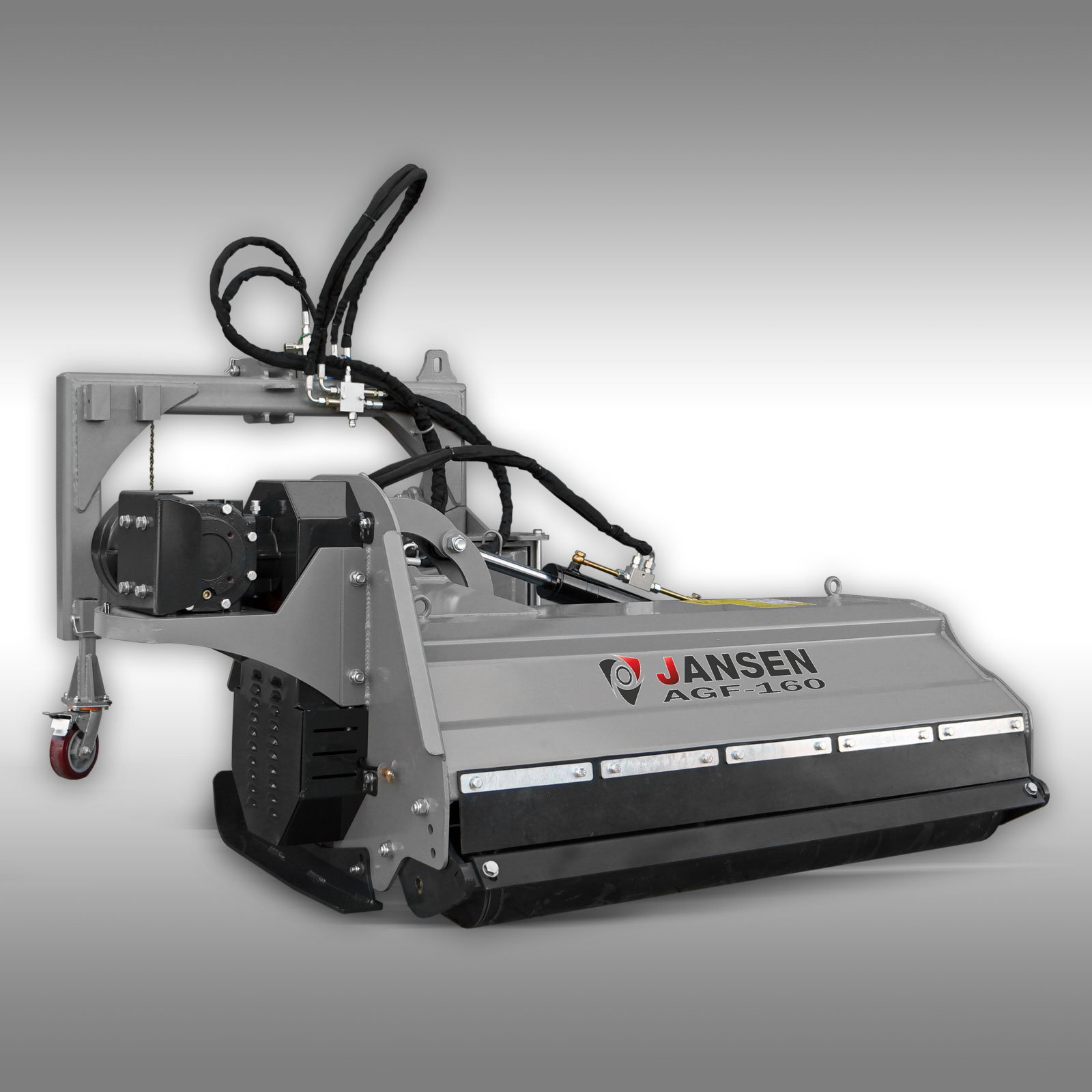 Tocătorul de vegetație cu braț Jansen AGF-160 este un tocator de top, proiectat pentru utilizare intensivă și profesională. Construcția sa robustă îl diferențiază de modelele mai ușoare, cum ar fi seria AGL, fiind cel mai greu model din gama sa, cu o rezistență sporită a materialelor. Cu o lățime de lucru de 160 cm și ciocane grele de 1,2 kg, acest tocător de vegetație este ideal pentru gestionarea eficientă a vegetației dense, precum iarbă înaltă, tufișuri sau resturi de paie.