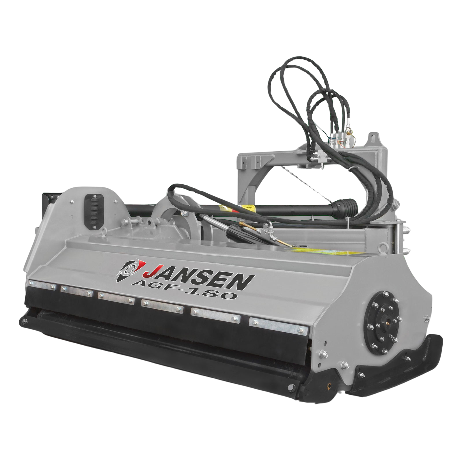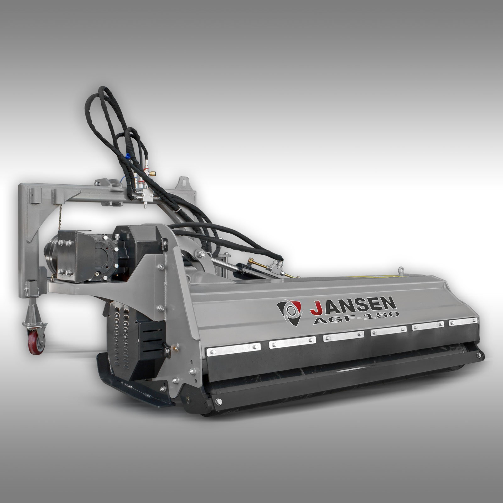 Tocătorul de vegetație cu braț Jansen AGF-180 este un tocator de top, proiectat pentru utilizare intensivă și profesională. Construcția sa robustă îl diferențiază de modelele mai ușoare, cum ar fi seria AGL, fiind cel mai greu model din gama sa, cu o rezistență sporită a materialelor. Cu o lățime de lucru de 180 cm și ciocane grele de 1,2 kg, acest tocător de vegetație este ideal pentru gestionarea eficientă a vegetației dense, precum iarbă înaltă, tufișuri sau resturi de paie.
