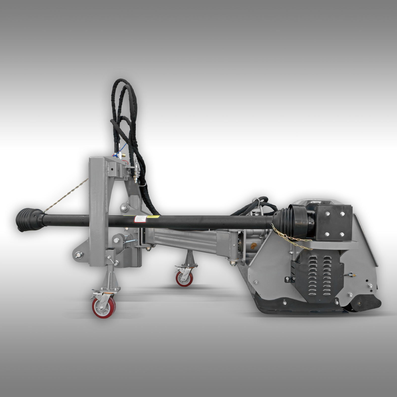 - Deplasare laterală și înclinare hidraulica: Cu ajutorul a doi cilindri hidraulici cu dublă acțiune, unitatea de tocare poate fi deplasată lateral și înclinată până la 90° în sus și 55° în jos, perfectă pentru întreținerea șanțurilor, digurilor sau a malurilor.