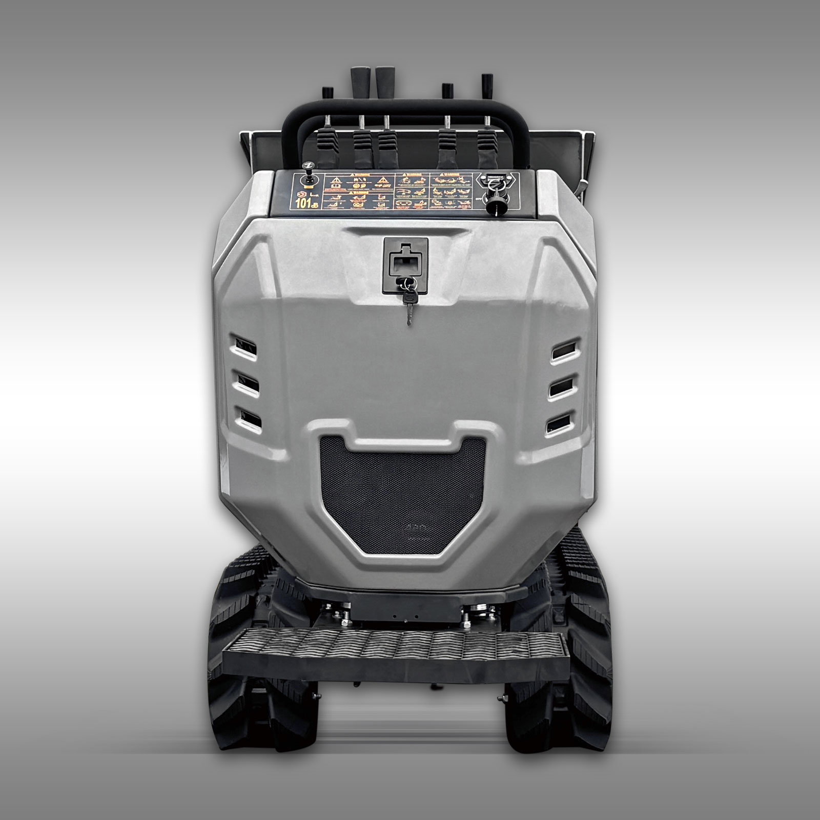 Transmisia hidrostatică permite controlul lin al vitezei și asigură un cuplu ridicat, ideal pentru terenuri noroioase, înclinate sau neuniforme. Construcția întărită, cu benă ranforsată de 3 mm grosime și unghi de basculare de peste 90°, garantează o durabilitate excelentă și descărcări ușoare.